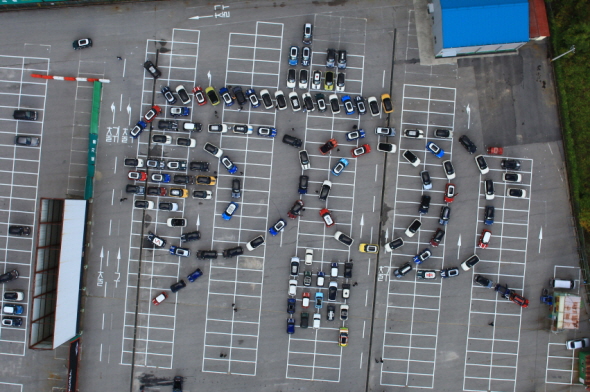 이번 행사의 백미는 행사에 참석한 300여대의 미니로 50주년을 기념한 대형 로고를 만든 것. 100여m에 달하는 대형 50주년 기념 로고는 무선헬기를 이용해 항공촬영을 실시했다.