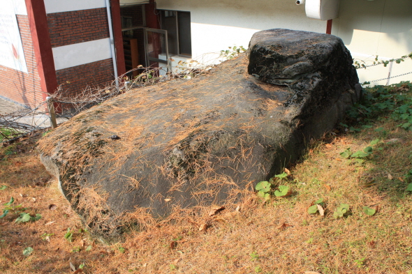 절집으로 오르는 계단 왼쪽에 있는 이 바위는 마치 또아리를 틀고 있는 뱀의 모양을 하고 있는데, 반대편의 개구리 모양의 바위를 낚아채기 직전의 형상이다. 풍수지리로 볼 때 이는 더없는 명당 명혈이라고 한다. 왕건이 후삼국을 통일하고 고려 태조에 오른 후 이 곳에 자신의 시호를 따 약천암(若天蓭)이라는 작은 암자를 지었다. 이후 화재로 소실됐으나 충렬왕 3년(1227년)에 재건됐고, 한국전쟁 때 전소된 걸 1964년 다시 지어 지금의 자인사에 이른다.