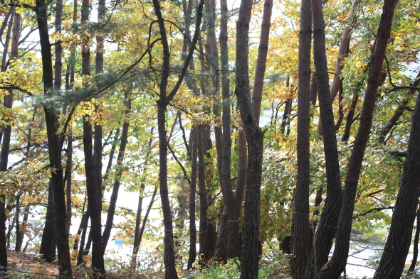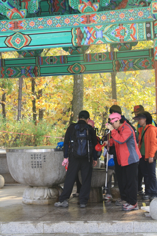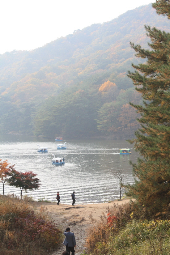 절집을 에워싼 울창한 숲길도 좋다. 오색단풍으로 물들었던 숲길이 이제는 발 아래 수북한 낙엽을 떨구고 섰다. 바스락거리며 부서지는 낙엽을 밟으며 산길을 내려가면 산정호수가 기다린다. 만추의 햇살을 받은 호수가 아름답게 반짝인다.