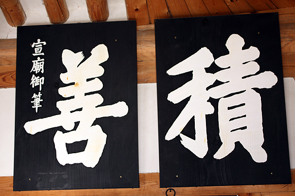 명농당은 1501년 농암이 귀거래(歸去來)의 의지를 표방하고 지은 집으로, 벽 위에 ‘귀거래도’를 그렸다. 종택 사랑마루에는 선조임금이 농암가문에 내린 ‘적선(積善)’이란 어필이 걸려 있다. 크기가 무려 1m나 되는데, 선생 아들 매암 이숙량이 왕자사부(王子師傅)의 벼슬을 받아 선조 임금께 나아가 사은숙배하니 임금이 “너의 집은 적선지가(積善之家)가 아니냐”라 하시고 즉석에서 써서 하사했다고 한다.