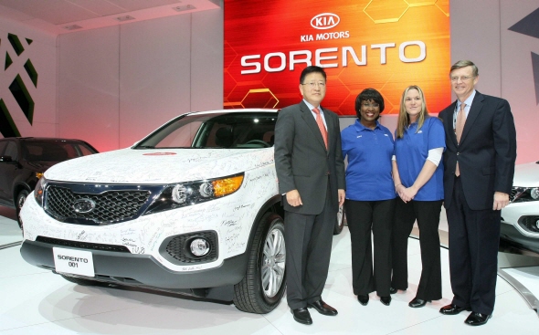 기아는 내년 1월 현지 출시를 앞둔 쏘렌토R의 신차발표회를 열었다. 이 차는 지난 11월부터 미국 조지아공장에서 양산을 시작했다. 기아의 첫 ‘Made in USA’ 차인 쏘렌토R은 미국과 캐나다 지역에 본격 판매에 들어가 SUV 본고장인 북미시장에서 쉐비 이퀴녹스, 토요타 라브4, 포드 엣지, 마쓰다 CX-7 등과 경쟁하게 된다. 쏘렌토R은 공개행사에 앞서 쏘렌토R을 만드는 조지아공장 직원들이 무대에 올라 공연을 펼치고 기아차에 대한 자부심과 열정, 최고 품질의 차 생산에 대한 의지를 표명했다.