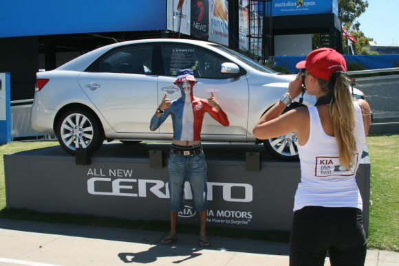 이 밖에도 기아차는 경기장 주변에서 쏘울, 쏘렌토R 등을 전시하고 콘서트 공연을 펼치는 등 대회 기간 경기장을 찾은 전 세계 테니스 팬들에게 기아차만이 선사할 수 있는 즐거움을 제공할 계획이다. 그뿐만 아니라 기아차는 테니스 네트와 펜스, 관중석 내 광고판에 기아차 브랜드 로고를 삽입, 어떤 TV 중계 카메라에도 로고가 노출될 수 있도록 해 TV로 호주오픈을 즐기는 전 세계 시청자들을 대상으로 기아차 브랜드 인지도를 높인다는 방침이다.