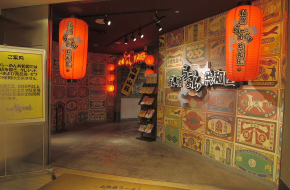 현란한 상표와 붉은 등을 밝힌 라멘교와코쿠 입구로 들어서면 저마다 최고임을 자부하는 라면가게에서 손님을 손짓해 부른다. 이곳에는 홋카이도 4대 라면이라 불리는 삿포로, 아사히카와, 하코다테, 구시로를 대표하는 8개 유명 가게가 입점해 있다. 내부는 1950년대 삿포로 분위기를 재현해 고전적인 분위기가 물씬하다. 홋카이도를 비롯한 전국 각지의 선물용 라멘 150여 종을 판매하는 물판점도 있어 마치 라면 테마파크를 방불케한다.