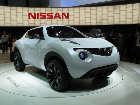 주크는 2009년 제네바모터쇼에서 닛산이 발표했던 컨셉트카 ‘카자나’를 기본으로 한 크로스오버카로, 스포츠카의 성능과 SUV의 강력함을 겸비했다는 평가를 받고 있다. 허리선을 중심으로 위로는 스포츠카의 유려함을, 아래로는 두툼한 펜더나 대형 타이어 등에서 SUV같은 분위기를 풍긴다.
