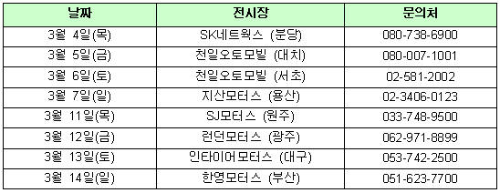 | 전국 시승행사 일정표 |