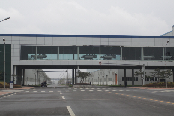 일부 라인에선 100% 자동화를 이뤄 로봇이 사람보다 많아 언뜻 삭막함이 느껴지기도 한다. 하지만 자연 채광과 따뜻한 색감으로 조명을 맞춰 현장에서 일하는 작업자가 편안함을 느낄 수 있도록 했다. 삭막함이 느껴지는 한국의 공장과는 사뭇 다른 모습이다. 프레스공장과 도장공장을 연결하는 통로는 밖에서도 볼 수 있다. 쉴 새 없이 완성된 차체가 도장 공장으로 향하는 모습에선 공장 시설에 대한 자신감도 읽을 수 있다. 도장공장은 100% 수용성 도료를 씀으로써 중국 정부로부터 "친환경 공장" 인증을 받기도 했다는 게 회사 관계자의 설명이다.