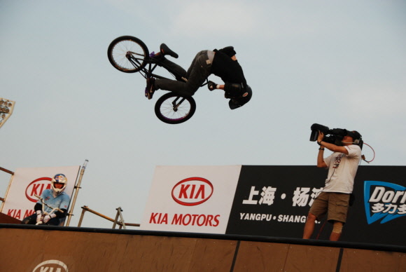 | 대회 한달 전부터 중국 상하이 중심가에서 열린 ‘2010 기아 아시안 X게임’ 사전 로드쇼 현장사진. |