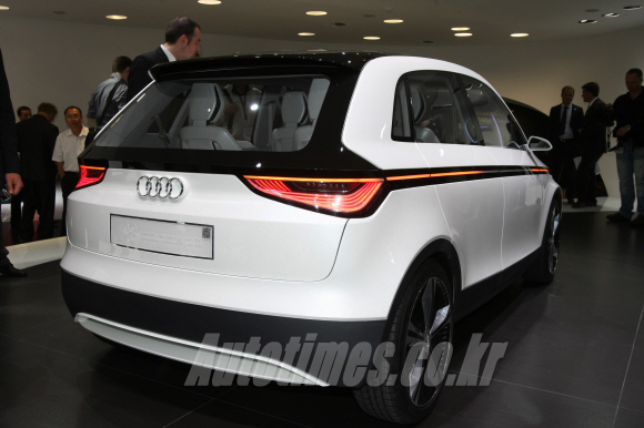 아우디 A2 컨셉트는 순수 전기차다. 1,150kg 미만의 초경량 차체 기술을 비롯해 여러 신기술이 적용됐다. 리튬-이온 배터리와 전기 모터가 탑재돼 최고 116마력, 최대 27.6kg.m, 0->100km/h 9.3초, 최고시속 150km의 성능을 갖췄다. 급속 충전시간은 1시간 30분, 230V 가정용은 4시간이 필요하다.
