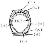 | 단조와 압연으로서 제조되는 철도차량용 차륜의 외주륜(外周輪). |