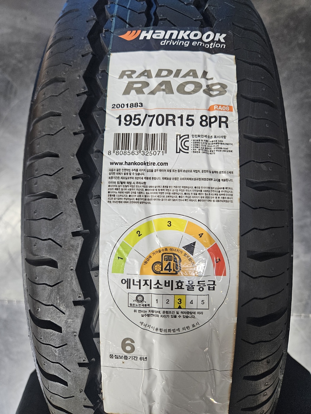 포터2 봉고3 195 70R 15 앞 전륜 타이어 한국 타이어 레디알 RA08 8P 1957015